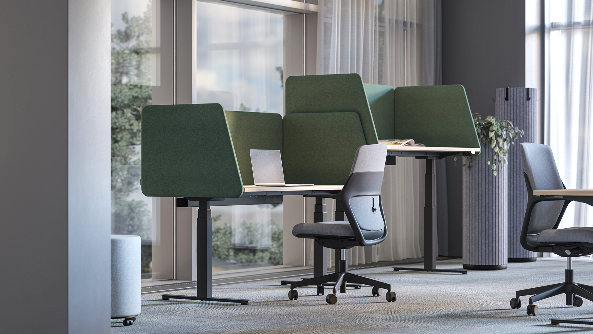 Uz akustična rješenja klase C i mogućnost odabira boja i tkanina, lako se prilagođavaju svakom tipu radnog prostora. Idealne su za opremanje ureda s fokusom na koncentraciju, komunikaciju i estetiku.