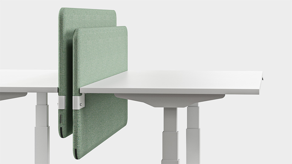 Za veću fleksibilnost nudimo akustične stolne paravane s podesivom visinom. Pomoću odgovarajućih okova, paravan se može podići ili spustiti do 500 mm iznad radne površine.