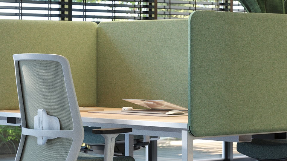 Akustične pregrade Top 530 pružaju dodatnu privatnost pojedinačnom radnom mjestu i smanjuju uredsku buku bez izolacije među kolegama.