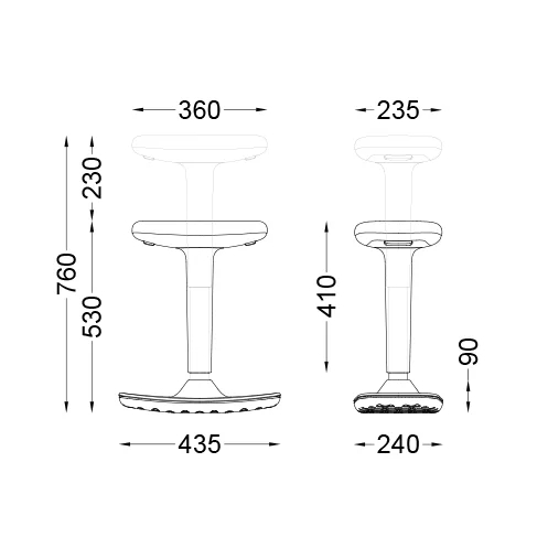 Ova visoka radna stolica za ljuljanje nudi raznovrsne opcije podešavanja visine, što je omogućeno plinskim podizačem. Ova visoka radna stolica se može rotirati za 360°, a njezina obla baza omogućava ljuljanje i aktivno sjedenje koje doprinosi boljoj posturi i zdravlju korisnika. Dostupna je u različitim bojama (bijela, crna, crvena) s protukliznom gumenom podlogom koja sprečava bilo kakve nesreće.