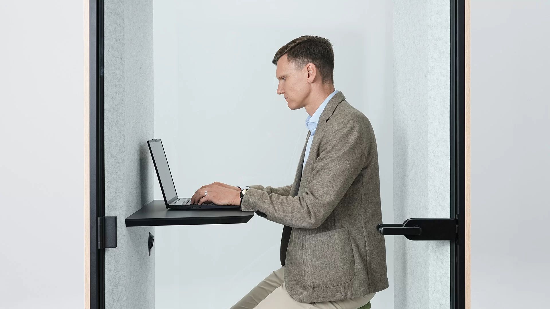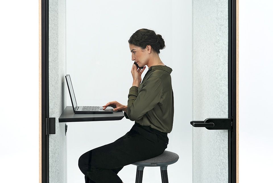 Akustične kapsule SONUS S nude izvrsnu zvučnu izolaciju, stvarajući ugodno tiho okruženje. Prema normi ISO 23351-1:2020, akustična kapsula klasificirana je kao zvučna izolacija klase B. Sa zatvorenim vratima SONUS S, zaštićeni ste od ometajuće uredske buke, a vaši privatni razgovori ostaju povjerljivi.